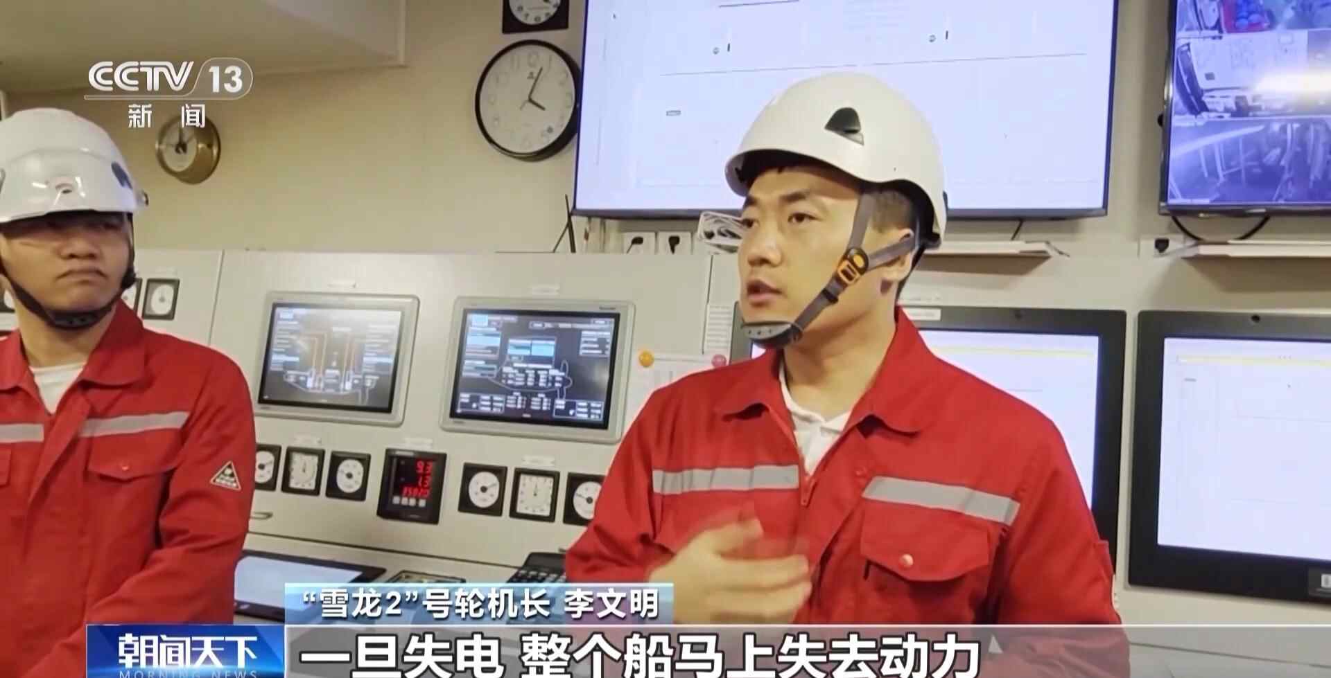 “雪龙2”号轮机长 李文明:从开始演习到现在,也就是十分钟多一点,现实中我们失电真实操作,可能比这个时间还要更短。因为我们船是电力推进船,一旦失电,整个船马上失去动力。尤其我们这艘船,本航次要反复经历好几次西风带,必须保证我们的队伍、设备,都保持最好状态。