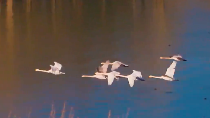 近日,河南三门峡,网友拍摄下落日时分天鹅成群结队飞跃湖面的情景,仿佛《滕王阁序》中的画面照进现实。这一刻终于理解了“落霞与孤鹜齐飞,秋水共长天一色”所描绘的绝美意境。