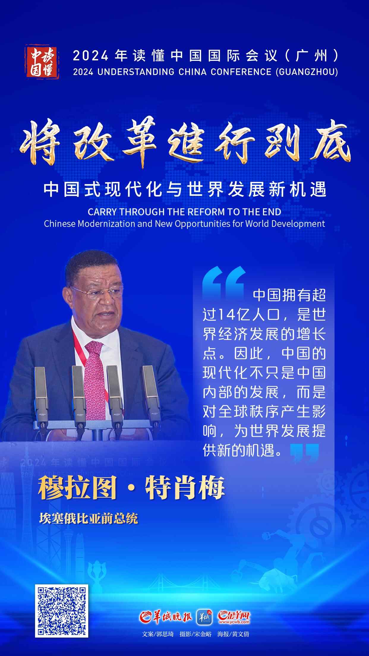 “中国式现代化不仅仅是中国内部的发展,更为世界发展提供了新的机遇。”12月3日上午,2024年“读懂中国”国际会议(广州)在广州越秀国际会议中心正式开幕。开幕式上,埃塞俄比亚前总统穆拉图·特肖梅在大会演讲中深入阐释了他眼中的中国式现代化。