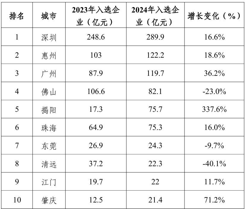 “由于部分企业并未进行申报,报告在研究分析过程中难以获取此类未申报企业的经营数据,故该部分企业及所在地市的统计数据会有缺失。”陶锋说,对比上年,2024年广东制造业500强入选企业数量增加、不变、减少的城市分别为6个、3个、8个,佛山的入选企业数量增加最多,增加32家,也可看到地域分布失衡状态依然存在。