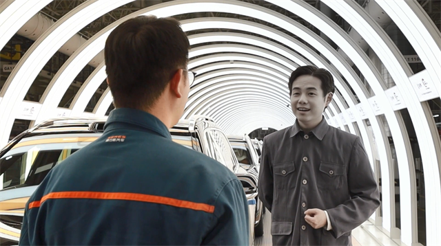 AI复活的烈士刘家彝参观赛力斯超级工厂。
