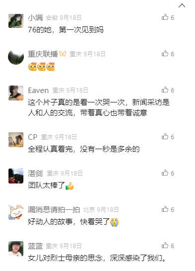 “跨时空的对话圆了母女之间的遗憾”“这样的故事看一次感动一次”“青春红岩,为国担当”……评论区,网友写下留言,称“向革命先烈们致敬”“向革命先烈们学习”。