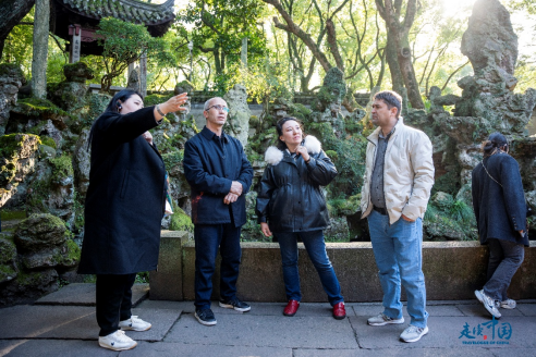 天一阁作为中国现存最古老的私人藏书楼之一,深深吸引了外国记者的注意。天一阁内保存了丰富的古籍与文化遗产,展现了宁波作为“文化名城”的深厚底蕴。讲解员向记者们详细地介绍了天一阁的历史背景和文化价值,讲述了“书藏古今、港通天下”的文化内涵,使记者们对宁波的文化历史有了更深的理解。