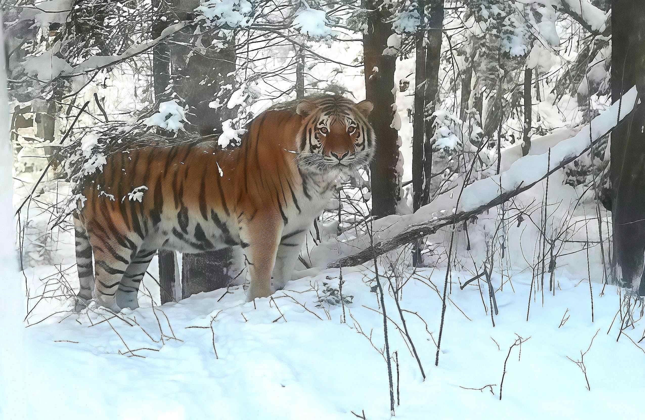 12月3日,吉林长白山保护区王池保护管理站站长刘桂福在距离上一次发现老虎足迹位置约300米处拍摄到了个体东北虎活动视频,拍摄时与老虎距离不到10米。视频中为一只成年东北虎,威风凛凛,眼神犀利,见到镜头也是时刻保持着“大王”范儿。