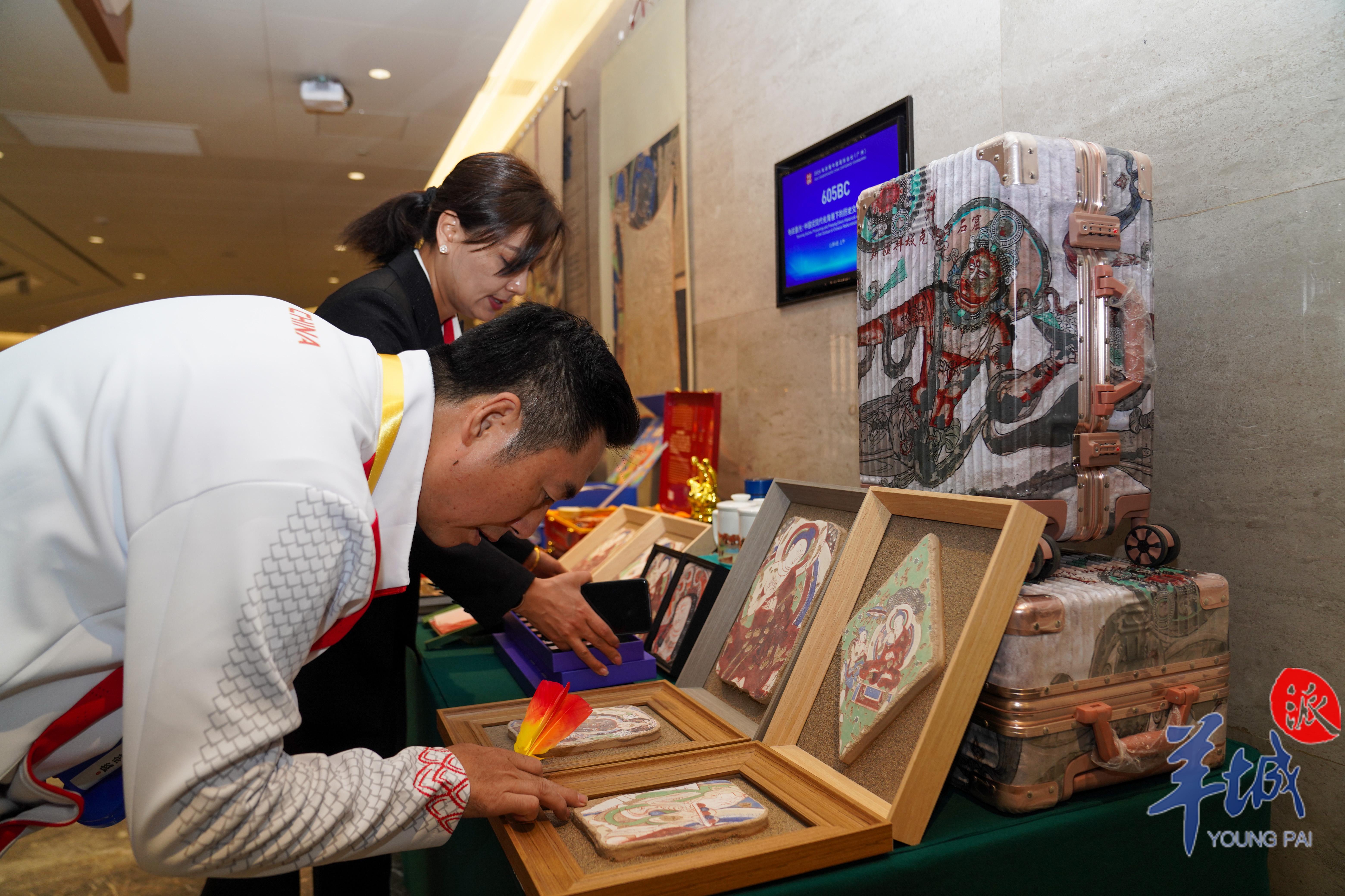 “卖吗?”这是记者在“龟兹重光:中国式现代化背景下的历史文化遗产保护传承”专题会议门口频频听到的话。原来,这里摆满了丝巾、迷你音箱、冰箱贴等文创产品,千年前的龟兹文化以一种新颖的方式融入现代生活里。路过的中外嘉宾都特别好奇,甚至心动到想把文创带回家,所以问出了“卖吗?”这句话。