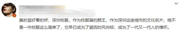 有网友表示,深圳校服让他很有归属感。也有网友感叹,深圳校服既是深圳的文化名片,也是一代人的情怀。