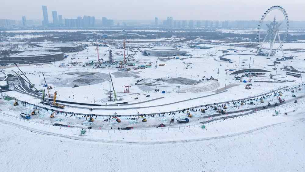 图为哈尔滨冰雪大世界施工现场。新华社发(殷忠伟 摄)