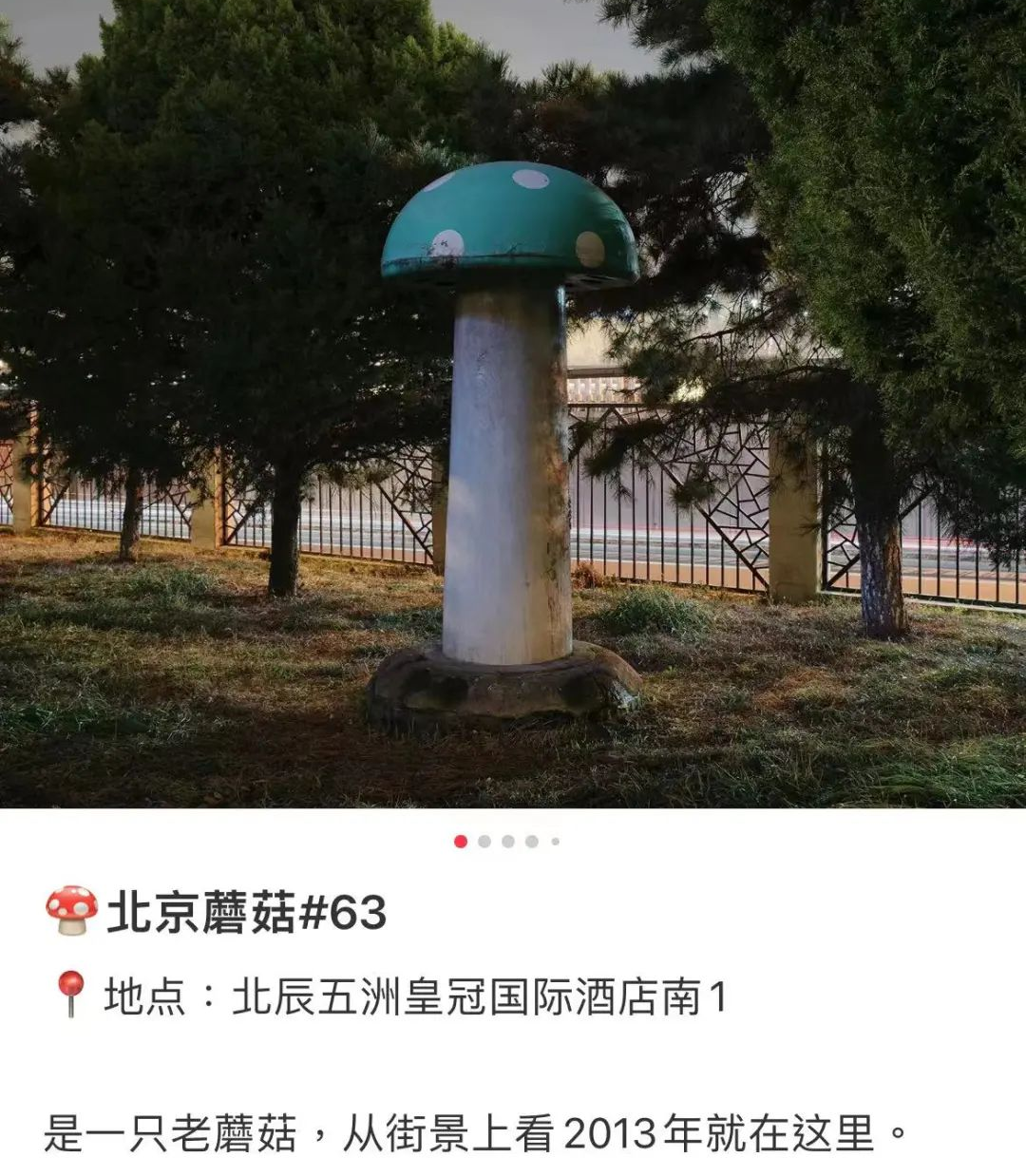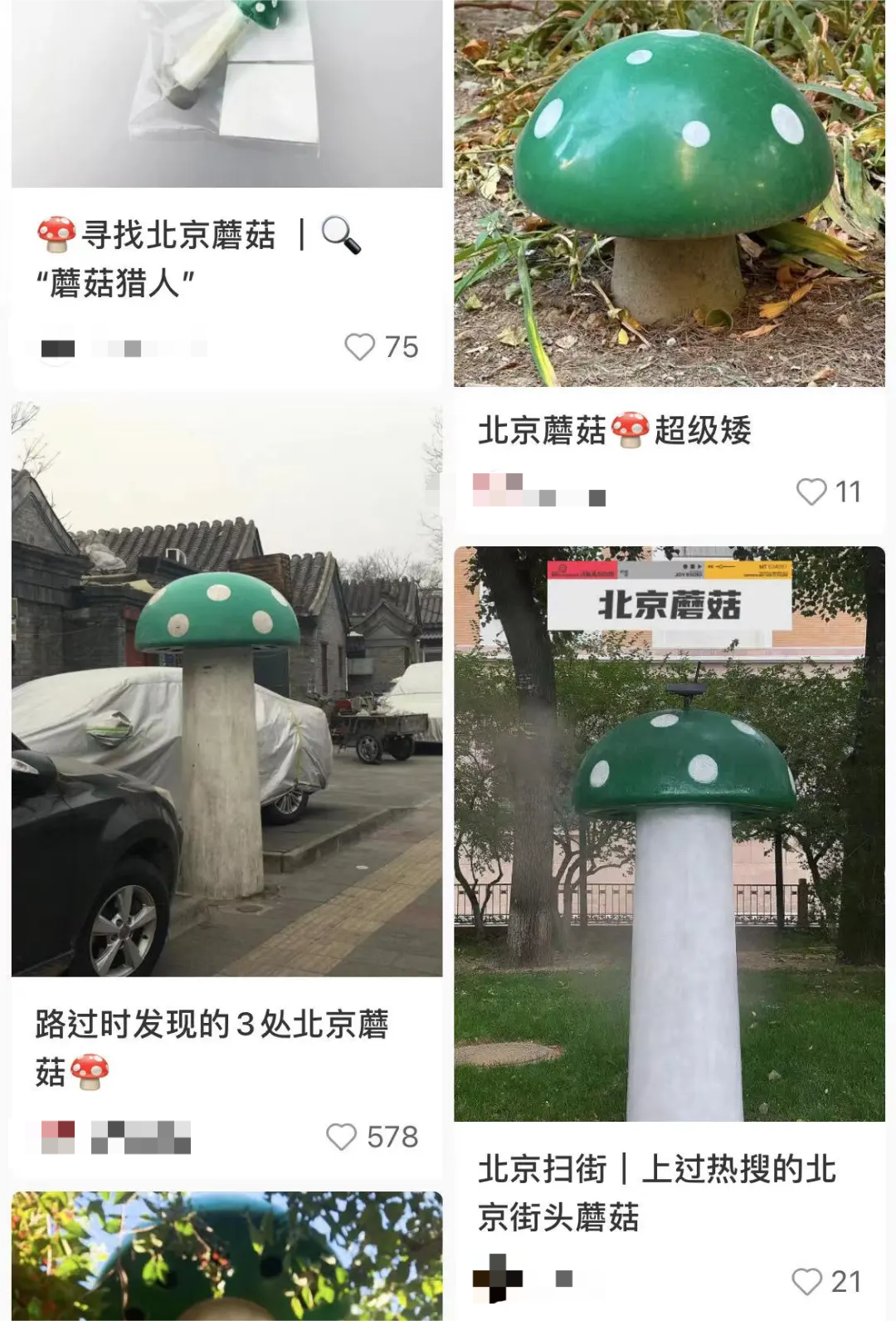 “从五棵松走到东四,一路上好多可爱的‘大蘑菇’。”在社交软件上,有一群“蘑菇猎人”。根据他们的描述,北京街头有些一人高的“蘑菇”,总能在不经意间遇见。标记“蘑菇”出现地点、拍照上传到社交媒体,是“蘑菇猎人”在这座城市的乐趣。