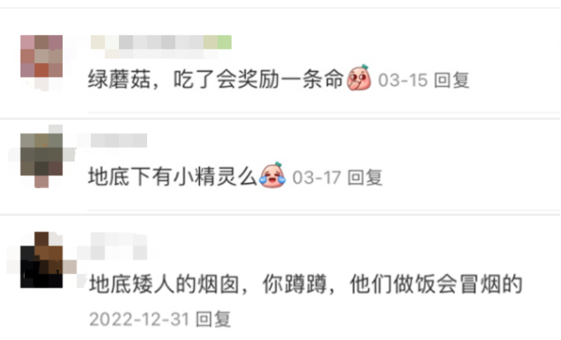 有说蘑菇是游戏道具进入现实的证据;有说这是其他种族“存在”的“证据”,譬如精灵;也有说是地底矮人家的烟囱......