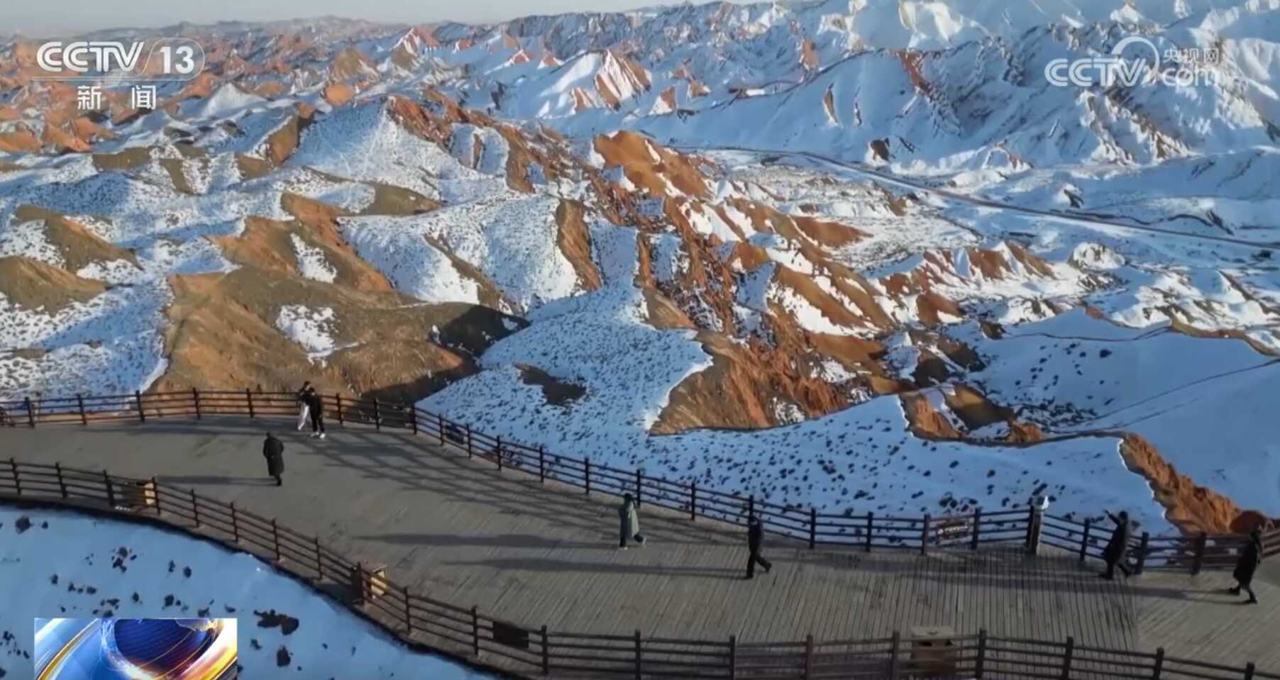 央视网消息:近日,在甘肃张掖,降雪后的七彩丹霞景区展现出别样的风姿与神韵,吸引了不少游客前来观赏。