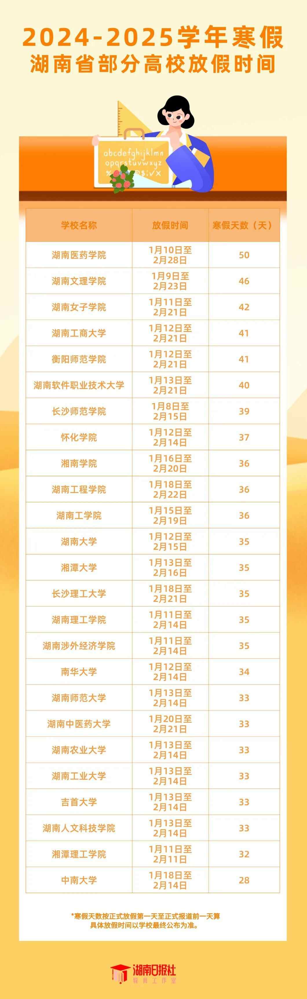 湖北省大多数院校都集中在2025年1月10日—20日开始放寒假,与往年差别不大。