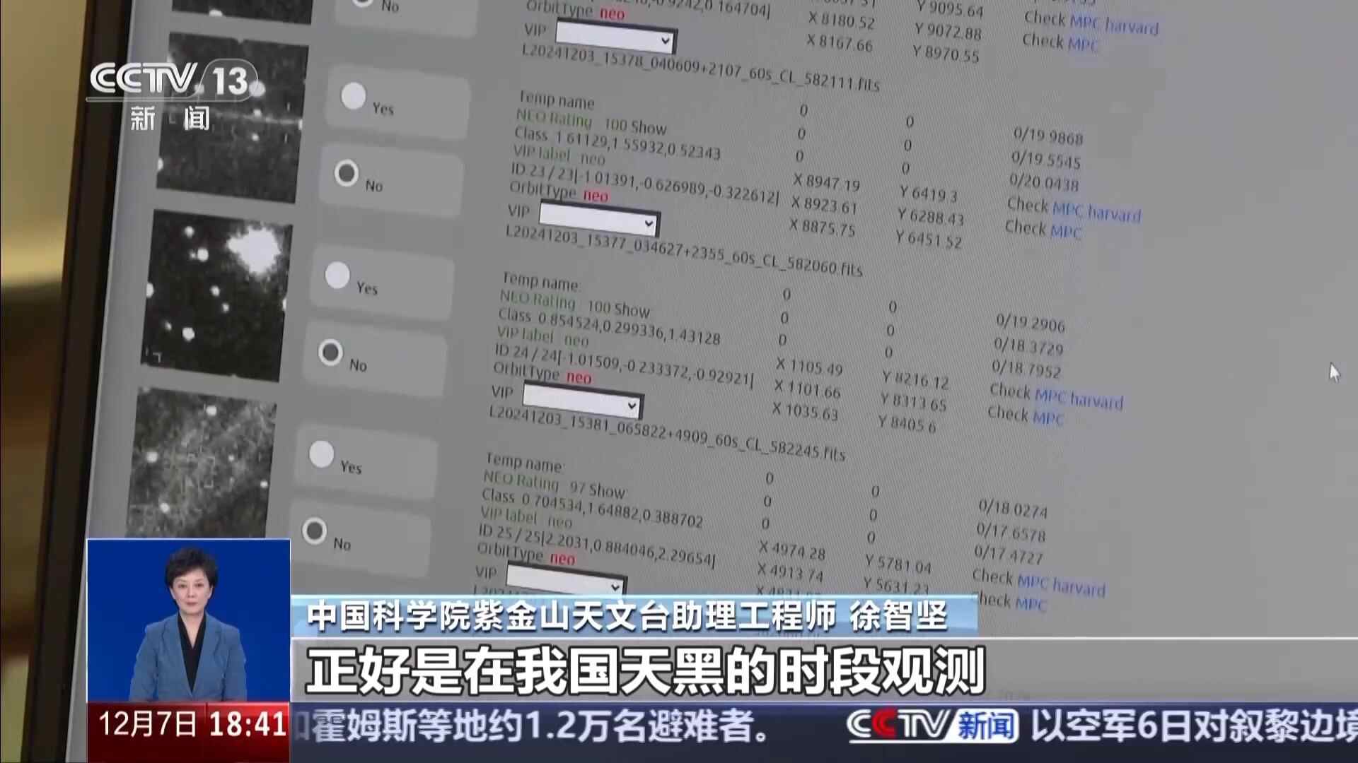 中国科学院紫金山天文台助理工程师 徐智坚:因为这次预报小行星撞击点是在西伯利亚,正好是在我国天黑的时段观测。从观测的数据来看,美国观测完到夏威夷之后,其实没有太多的观测台站,直至我国进入天黑阶段后,国内各台站观测结果发挥重要作用。
