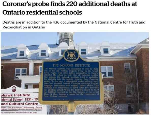今年12月初,加拿大安大略省验尸官发布新的调查结果,该省再发现220例与原住民寄宿学校有关的死亡事件。此前该省在国家真相与和解中心登记的原住民寄宿学校相关死亡人数为436人,这一发现使死亡人数上升至656人。
