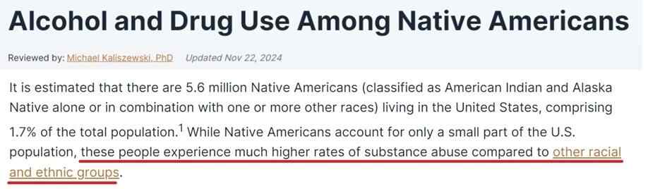 美国成瘾中心发布的一篇论文显示,据估计,美国约有560万印第安人,占总人口1.7%。与其他种族和族裔群体相比,印第安人的药物滥用率要高得多。