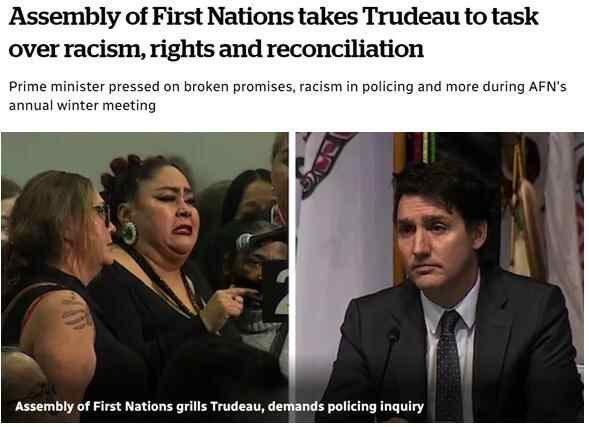 与会原住民酋长们指责特鲁多及加拿大政府缺乏协商、违背承诺,并表示“原住民不应生活在苦难和贫困当中”。