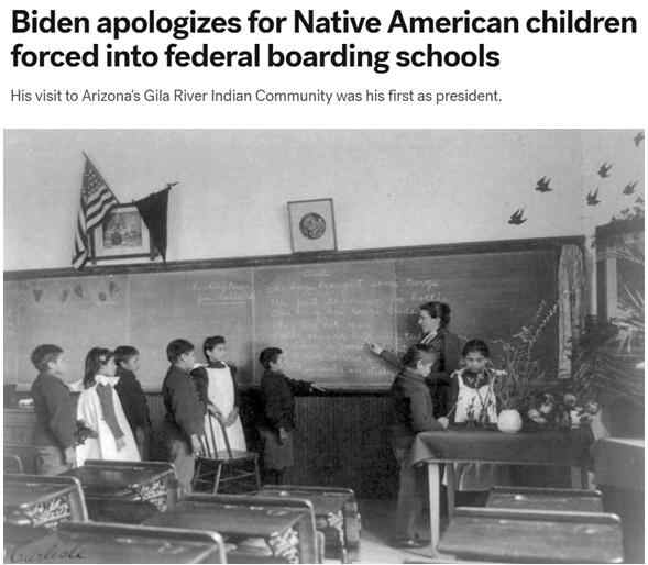 美国总统拜登10月25日在亚利桑那州参加原住民社区活动时,为美国政府强迫原住民儿童进入寄宿学校向美国原住民正式道歉。