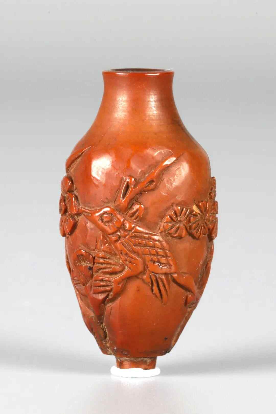 “喜上眉梢 松鹤延年” 花瓶 民国 高3.6厘米,直径1.9厘米,重4.7克