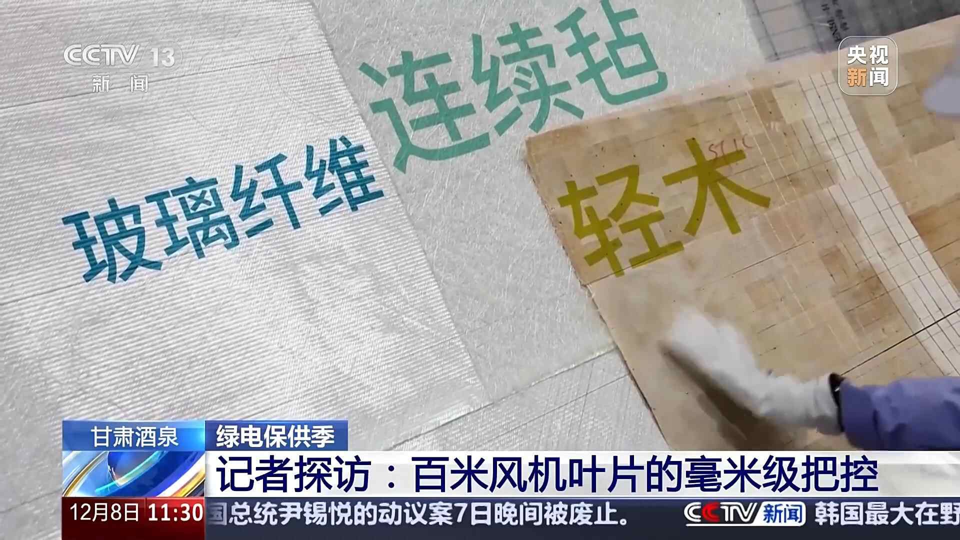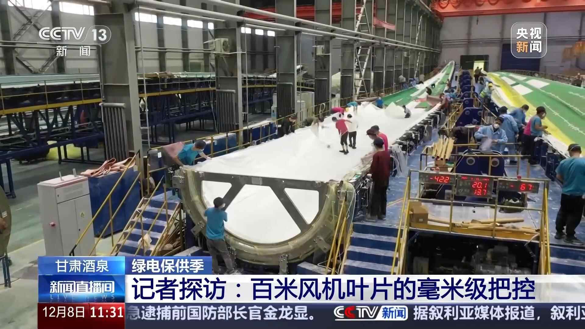酒泉经济技术开发区某风电企业副总工程师 贾宏伟:虽然我们叶片是百米级的,但是所有结构布层是按照毫米级的管控要求,单个的玻璃纤维布和芯材,它的铺设的精度要求都能达到毫米级。