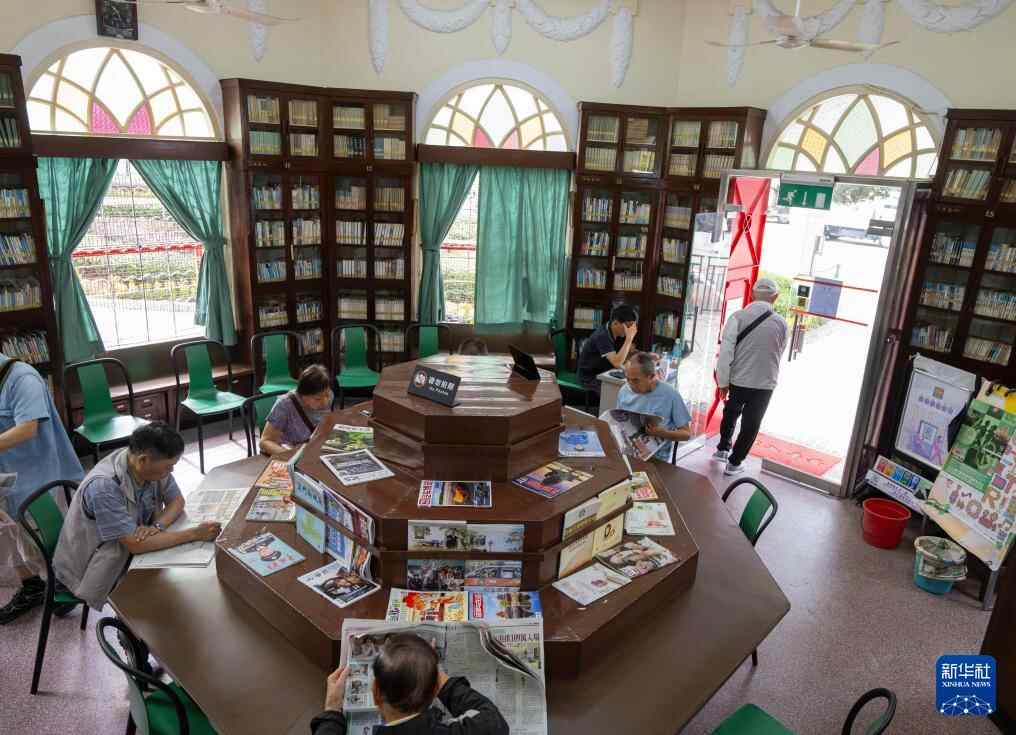 人们在八角亭图书馆阅读报章(10月30日摄)。新华社发(张金加摄)
