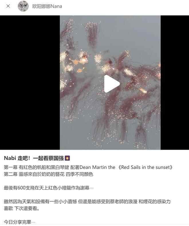 不少现场观众在社交媒体上分享观演感受,有人说:“不完美的艺术,像极了人生。”亦有人说:“此刻,一场BE(Bad Ending)美学诞生,意难平。”对于此次“不完整”的烟花秀,不少人直呼太遗憾,也有人表示理解,期待蔡国强今后的烟花作品。