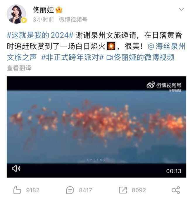 据悉,蔡国强是知名烟花艺术家,被誉为“中国烟花第一人”,北京奥运会上的“大脚印”就出自其手笔。这场白日焰火分为“红帆”“簪花”“世界”三幕,不仅为泉州全城的人上演了一场宇宙级的浪漫,也吸引了贾樟柯、赵丽颖、林更新、欧阳娜娜、佟丽娅、窦靖童等演艺界人士前来现场观看表演。