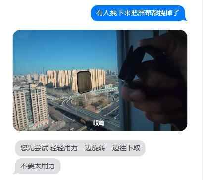 商家表示,遇到这样的情况,撕开贴膜的一个小角,手表就会自己脱落。