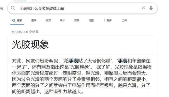 还有专做数码产品维修的博主@波哥维修现身说法,贴了膜的手表牢牢吸在了玻璃上,而没有贴膜的手表和窗玻璃并没有任何吸附力。