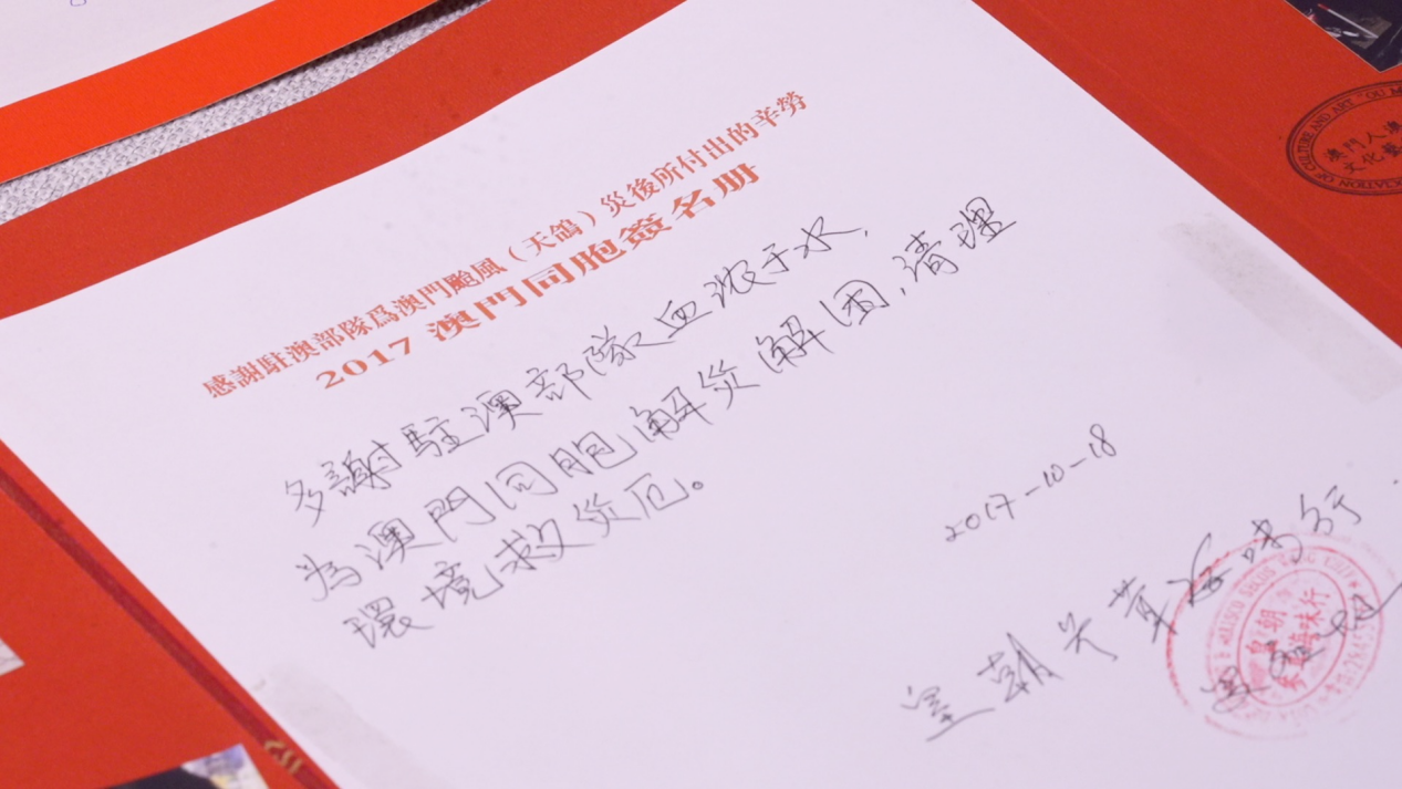 2017年台风过后 15万澳门市民签名、留言感谢驻澳门部队