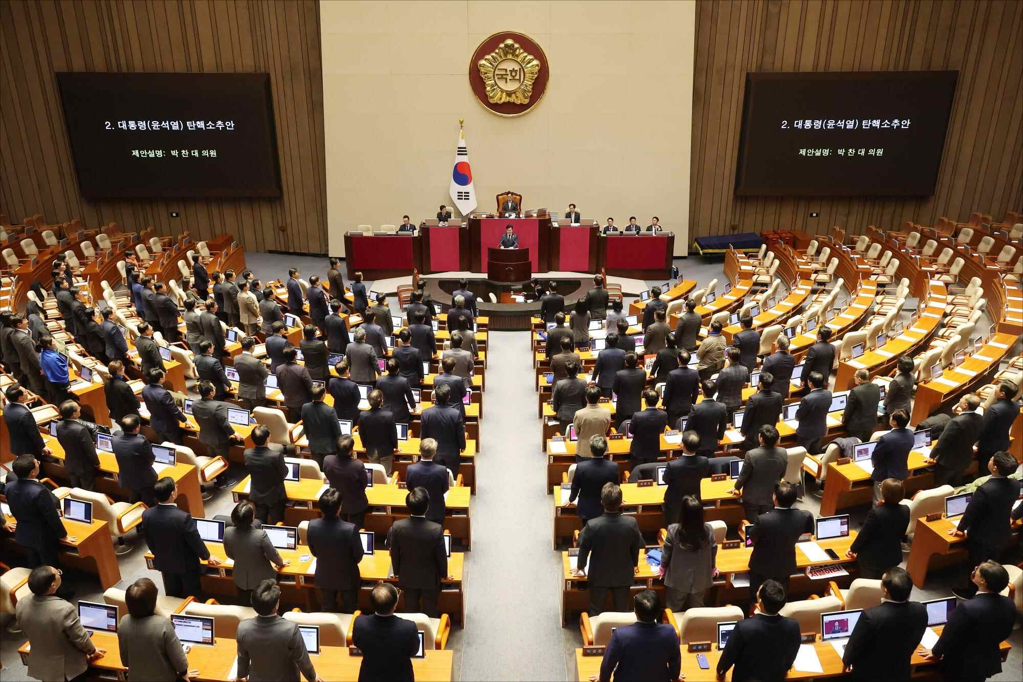韩国国会全体会议召开 表决尹锡悦弹劾案