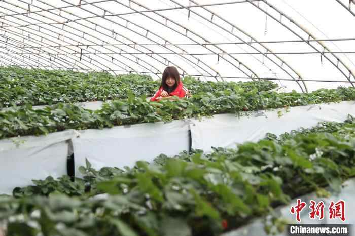 “立体栽培的最大好处是提高种苗数量。同样的土地面积,立体栽培要比普通地面栽培每亩多苗2到4倍,而且草莓的品质也比较好,价格自然也要好一些。”禹陆元说,2020年,他变平地传统模式栽培为大棚立体模式栽培。立体种植草莓,果实悬在空中,不仅便于采摘、降低劳动强度、提高单位面积产量,更减少了果实与地面的接触和因湿度过大而造成的病害,大大提高了优质果比例。