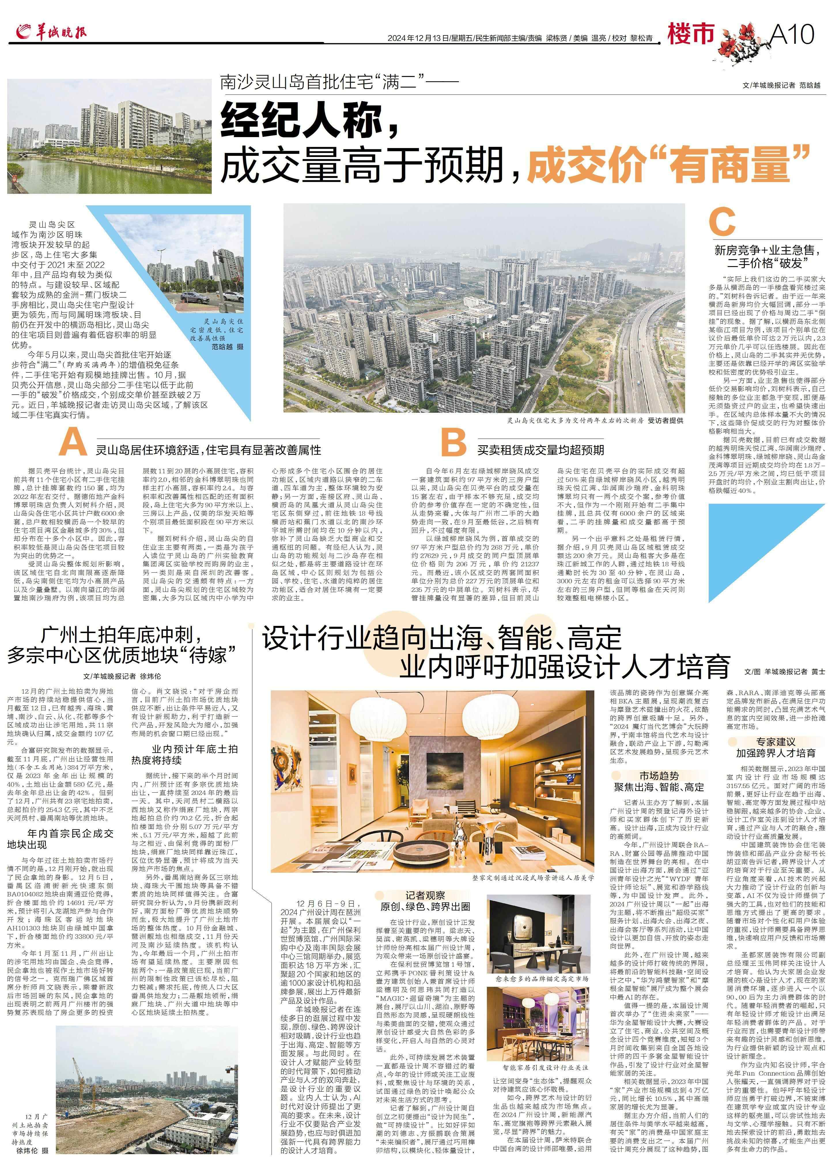 今年1月至11月,广州出让的涉宅用地均由国企、央企竞得,民企拿地也被视作土地市场好转的信号之一。克而瑞广佛区域首席分析师肖文晓表示,乘着新政后市场回暖的东风,民企拿地的出现表明之前两月广州楼市的强势复苏表现给了房企更多的投资信心。肖文晓说:“对于房企而言,目前广州土拍市场优质地块供应不断,出让条件平易近人,又有设计新规助力,利于打造新一代产品,开发风险大为缩小,加强布局的机会窗口期已经出现。”