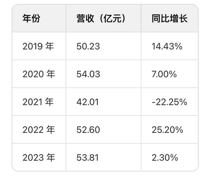这也意味着老干妈2023年的营收正逼近2020年54亿元的巅峰水平——老干妈的营收在2019年迈上50亿元大关,并在2020年达到54亿元,但在2021年大幅下滑至42.01亿元,直到2022年才拉回至52.60亿元。