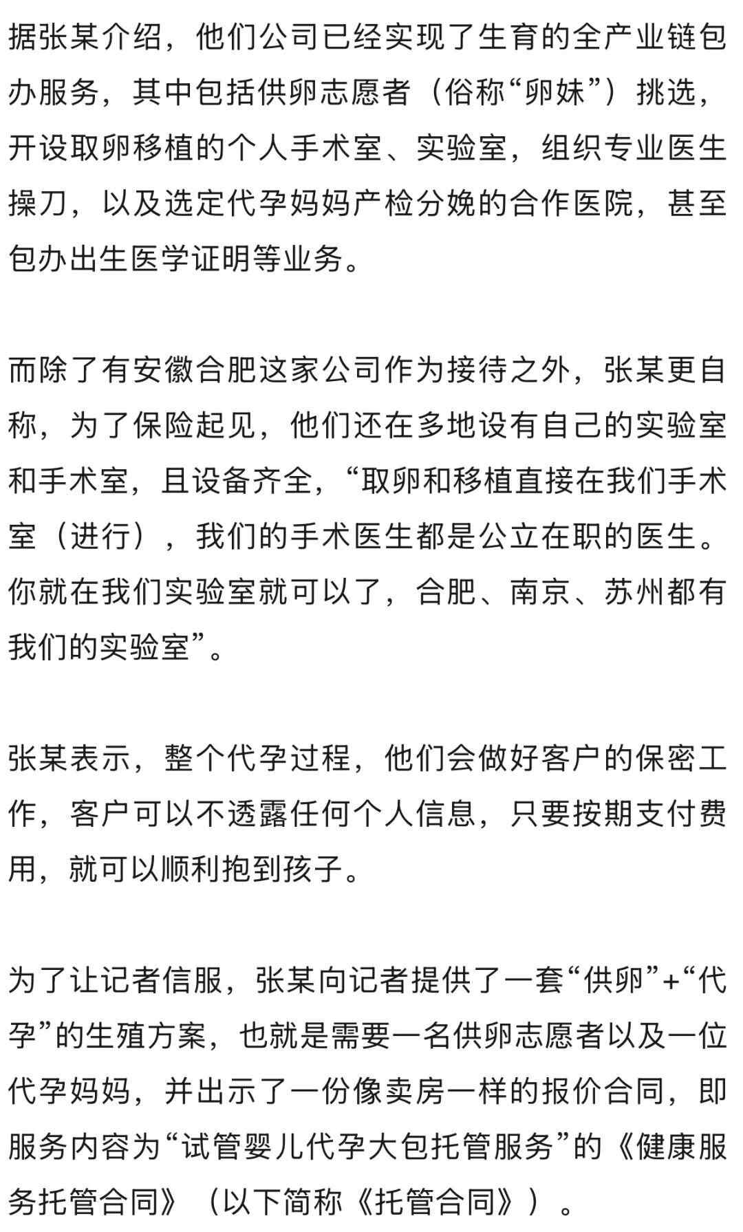 “定金2万,取卵再交6万,办理出生证明10万起……”记者从《托管合同》附录上的时间表看到,从签约到选定志愿者再到代孕妈妈分娩生产,每一套流程都标注费用说明,整套包办下来费用总计80万元,而清华北大志愿者供卵生殖方案最高可达150万元。
