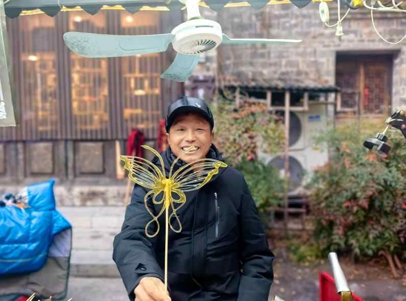 “晚饭后、周末、节假日人很多,小孩们都很喜欢,现在大家吃的不是糖,是一种艺术。”自称“糖画小老头”的苏杰宣今年59岁,糖画是他的谋生技巧,也是他最大的兴趣所在。“传承非遗不是光保护起来,是要出现在人们的日常生活中。”为了让更多年轻人了解糖画,苏杰宣还拍摄糖画趣味视频,今年3月份,他开通了直播间,每周坚持直播,目前在短视频平台拥有3.6万粉丝,“非遗传承需要年轻力量,要用年轻人乐于参与的方式传播。”不光自己坚守糖画技艺,苏杰宣还带出了100多名学员,“除了在管仲老街,我们的糖画还走进社区、学校等。”