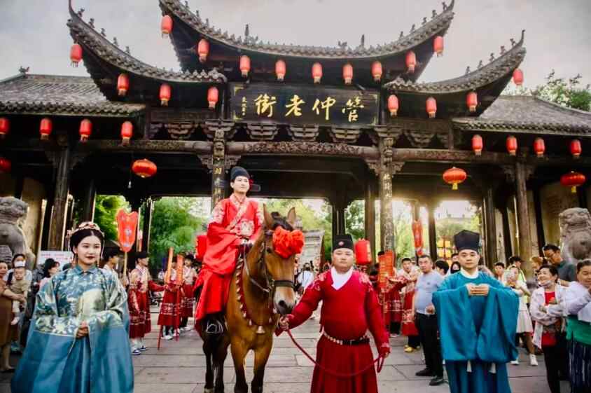 游在老街,乐在老街。节假日的老街,河道花船、国家级非遗花鼓灯、大鼓书、琴书、快板、推剧、古典婚礼秀等轮番上演,整条街都变成了民俗表演的舞台,让游客沉浸式近距离欣赏,深厚的文化变得可亲可感。今年10月,老街“古典婚礼秀”项目入选“十大长三角古镇文旅消费新场景”。更可喜的是,受“古典婚礼秀”启发,已有近10对新人选择在老街举办古典婚礼,让传统文化回归人们的日常。
