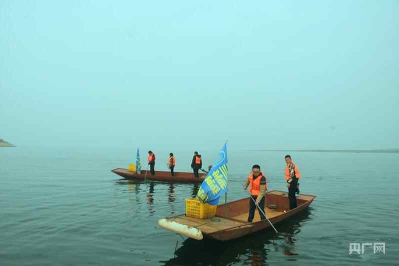 淅川县清漂队员在水库清理漂浮物(央广网发 淅川县委宣传部供图)