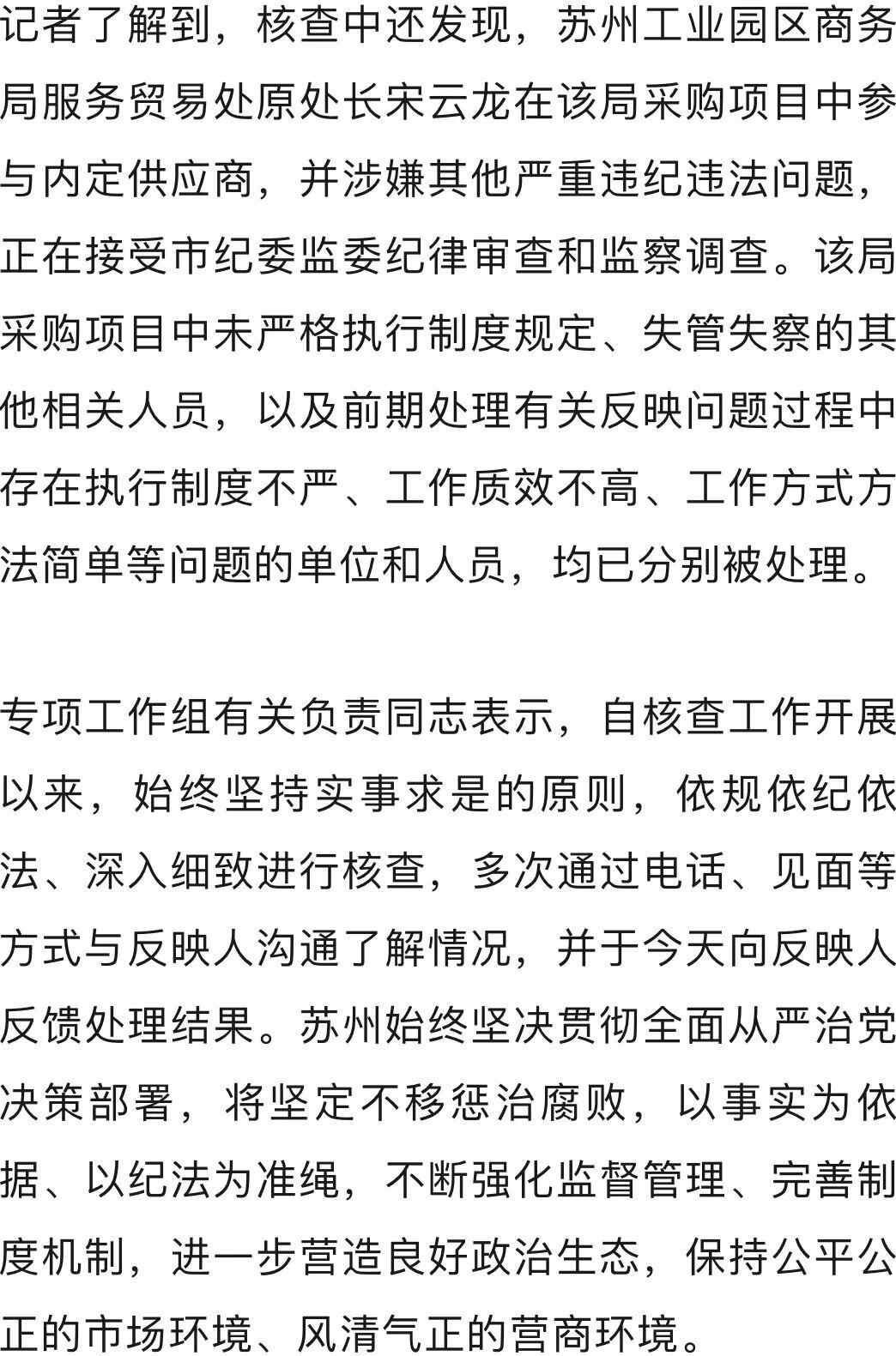 12月15日,记者从苏州市专项工作组获悉,对反映苏州工业园区商务局原党组书记、局长祝欢等的有关问题已查清并作出处理。