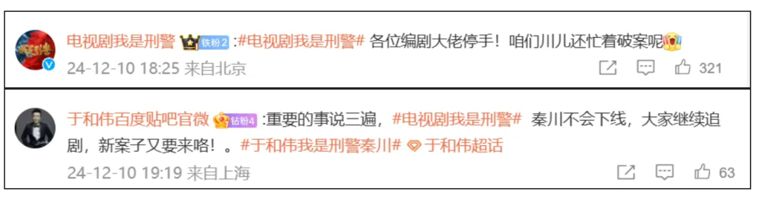 官方账号和于和伟贴吧也在评论区辟谣,@电视剧我是刑警:“各位编剧大佬停手,咱们川儿还忙着破案呢!”