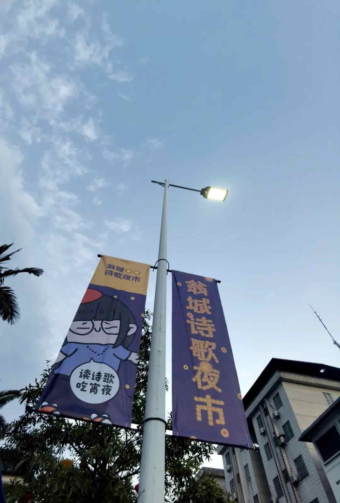 下午增加了十个诗歌夜市招牌,就在重要路边的路灯上。