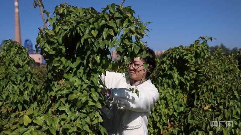 科研人员检查富氢山药生长情况(央广网记者 郎麒 摄)