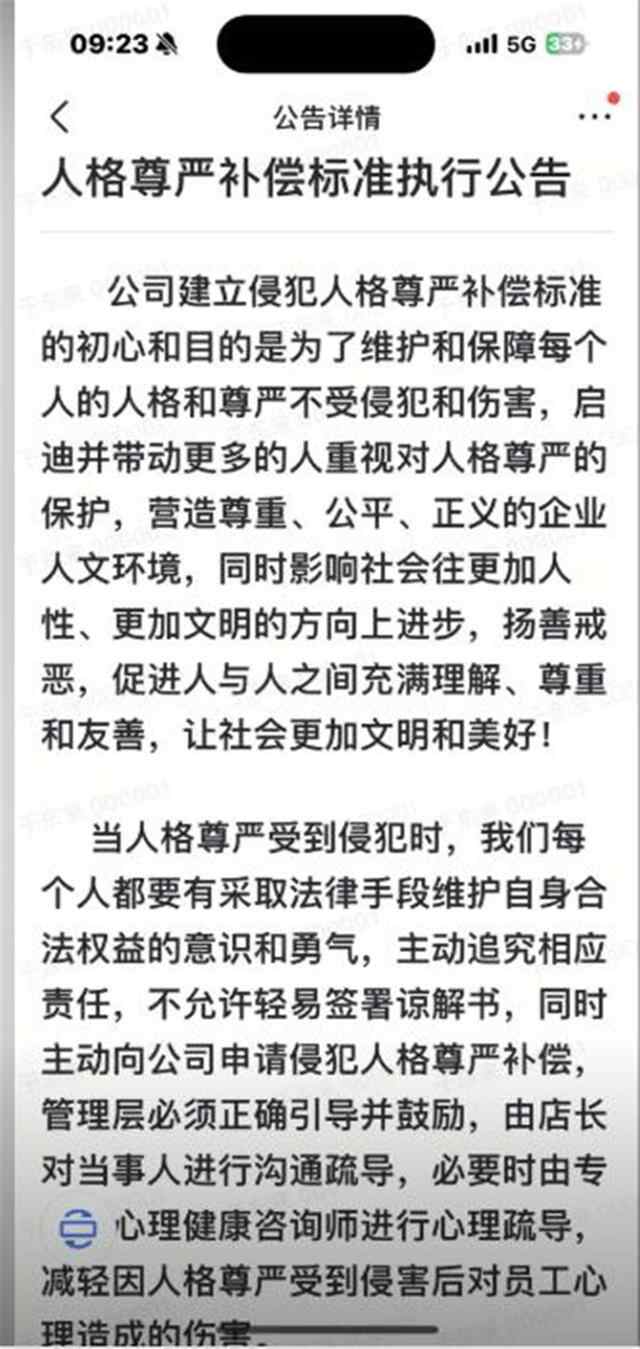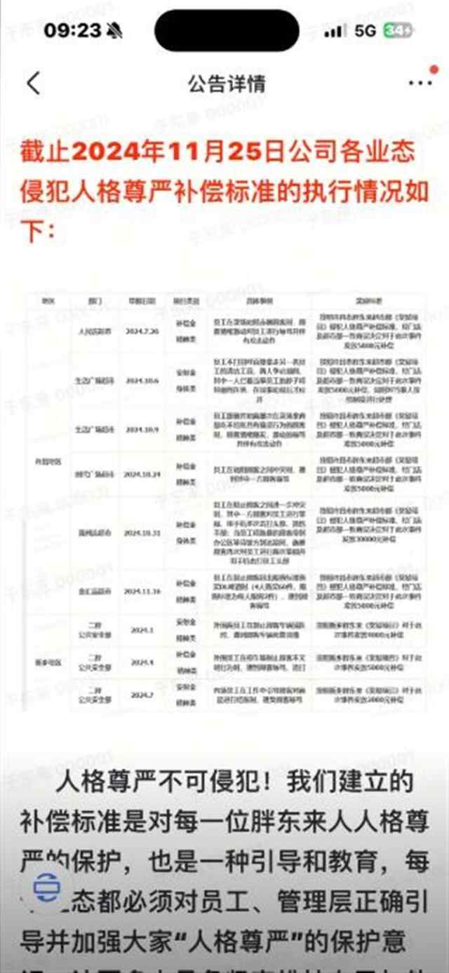 12月17日,胖东来创始人于东来在社交媒体发布胖东来人格尊严补偿标准执行公告,公司建立侵犯人格尊严补偿标准的初心是为了维护和保障每个人的人格和尊严不受侵犯和伤害,启迪并带动更多的人重视对人格尊严的保护。