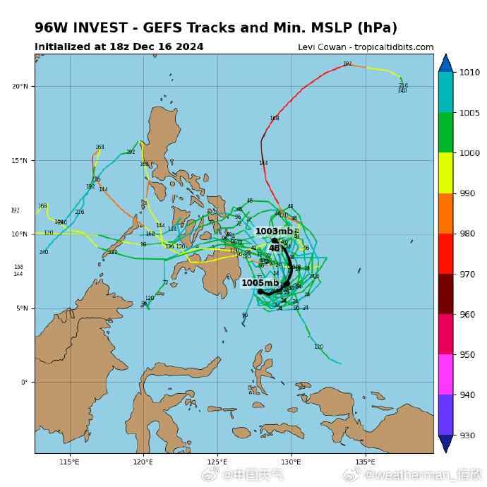 目前,在菲律宾东南侧近海有个热带扰动,临时编号96W。中国气象频道气象分析师信欣分析,目前这扰动所在环境的海温在28℃左右,垂直风切变较小,总体条件利于发展。有一定机会成为今年26号台风“帕布”,也可能是今年最后的台风。