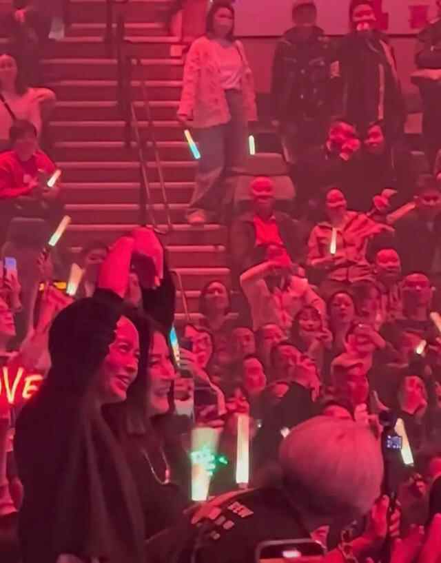 在演唱会现场,久未露面的梁咏琪、陈慧琳也到场支持,两人在现场比心引来观众欢呼。