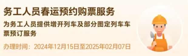 2024年12月12日起至2025年2月12日,符合条件的学生旅客,可在铁路12306手机客户端“学生预约购票专项服务”专区,预约购买2024年12月28日至2025年2月28日的火车票。