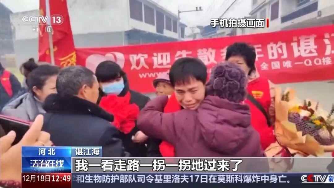 谌江海:我们见面当天,我一看她走路一瘸一拐地过来了,长得特别像,我就认得肯定这是妈妈。妈妈那时候还在找我,我就找过去了,当时俩人直接就拥抱到一起了,都在哭,反正我一看到她长得像,我眼泪就不由自主地流下来了,妈妈找到我,她的眼泪也流下来,也在哭。