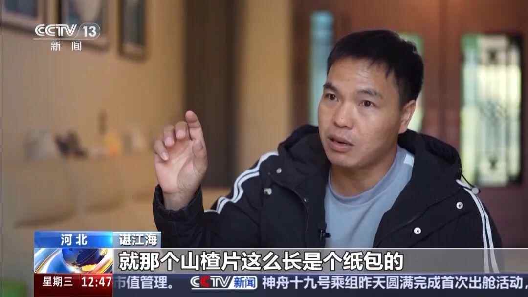 谌江海:跟我哥哥说带我去买东西,我哥哥在那边打游戏,我就在他旁边站着,人贩子把我带走,给我买了一包山楂片,就那个山楂片这么长,是个纸包的。