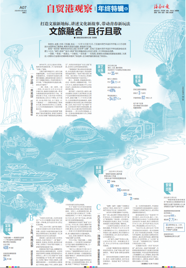 一部剧、一条路、一场演出、一次展览、一项非遗……在海南,新鲜的文旅融合现象接连涌现,为满足人民群众日益增长的精神需求提供了新选择,也为高质量发展创造了新浪头。