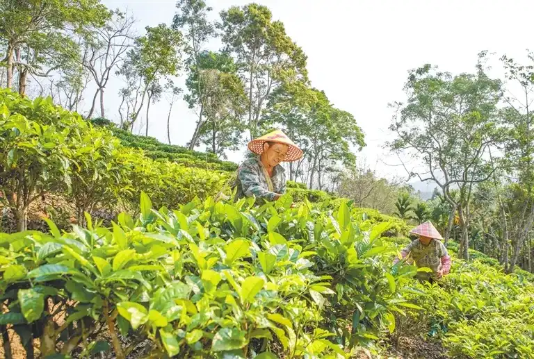 五指山市水满乡毛纳村的村民在采茶。海南日报全媒体记者 李天平 摄