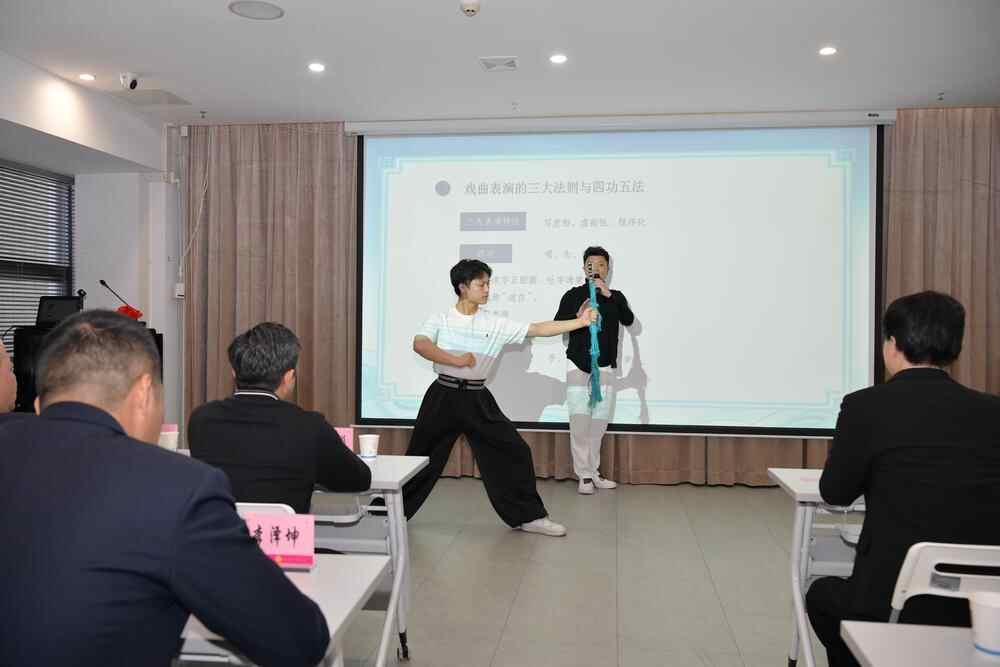 随后,广州粤剧院广州红豆粤剧团团长、国家一级演员、市级非遗传承人陈振江首秀开课。他以《戏曲角色创造的趣味》为主题现场授课,讲授包括粤剧历史、粤剧唱腔流派、粤剧行当、戏曲演绎与其他门类表演艺术之区别;并以传统剧目《斩经堂》为例,现场表演精彩片段,与在场的学生面对面互动交流,小朋友们争先恐后回答问题,拿起笔认真记录学习笔记,活动现场气氛热烈,居民群众一致点赞好评。