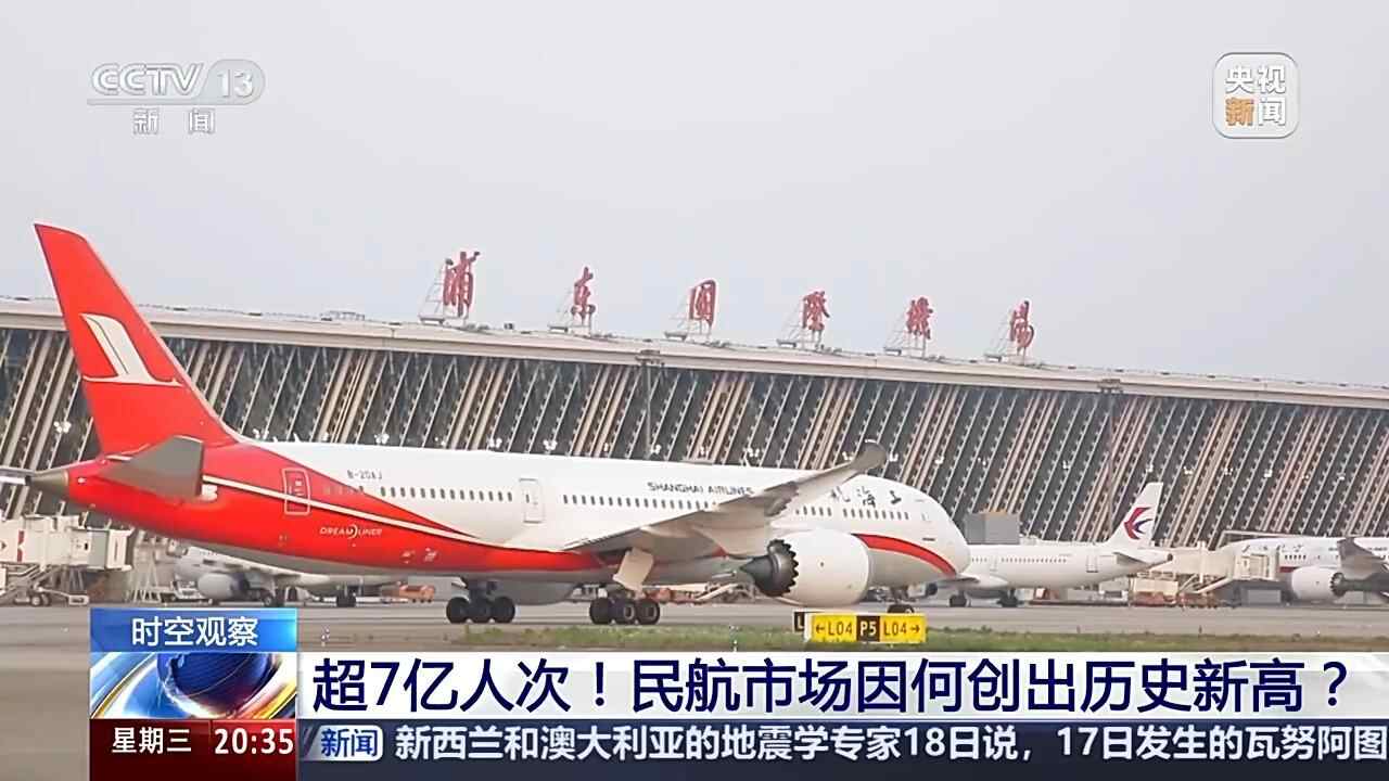 记者从民航局了解到,今年以来,民航运输生产保持良好增长态势,截至12月15日,我国航空公司完成旅客运输量超过7亿人次,创我国民航发展历史新高。那么民航旅客量破7亿人次是一个怎样的水平?